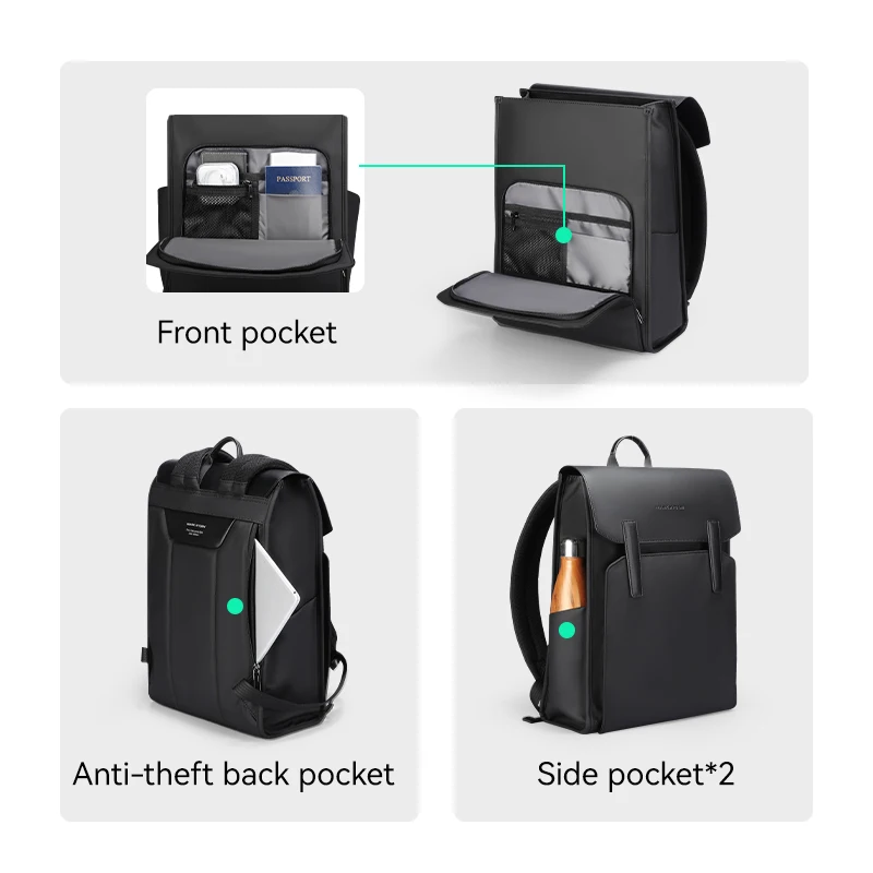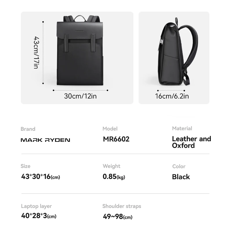 Eleve seu estilo e sua organização com a mochila que combina a elegância clássica de um acessório executivo com a funcionalidade e a segurança que o seu dia a dia exige. Com um design sofisticado e minimalista, esta mochila da **MARK RYDEN** é perfeita para o ambiente de trabalho e o uso urbano. O material de **couro Oxford preto** premium confere um visual robusto e profissional, enquanto o fecho de **ferrolho magnético** adiciona um toque moderno e uma segurança extra, protegendo seus pertences com elegância.