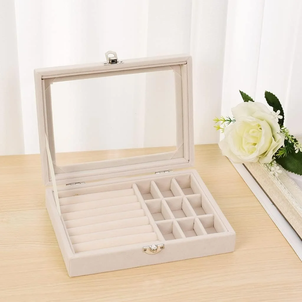 - **Visibilidade Total:** A tampa de vidro transparente permite encontrar suas joias rapidamente.