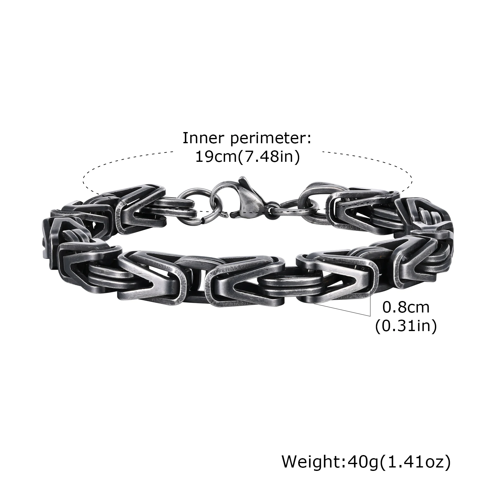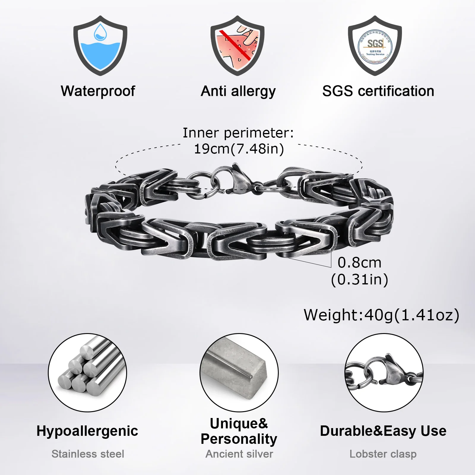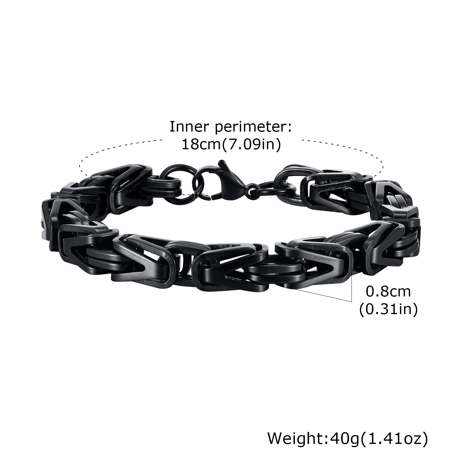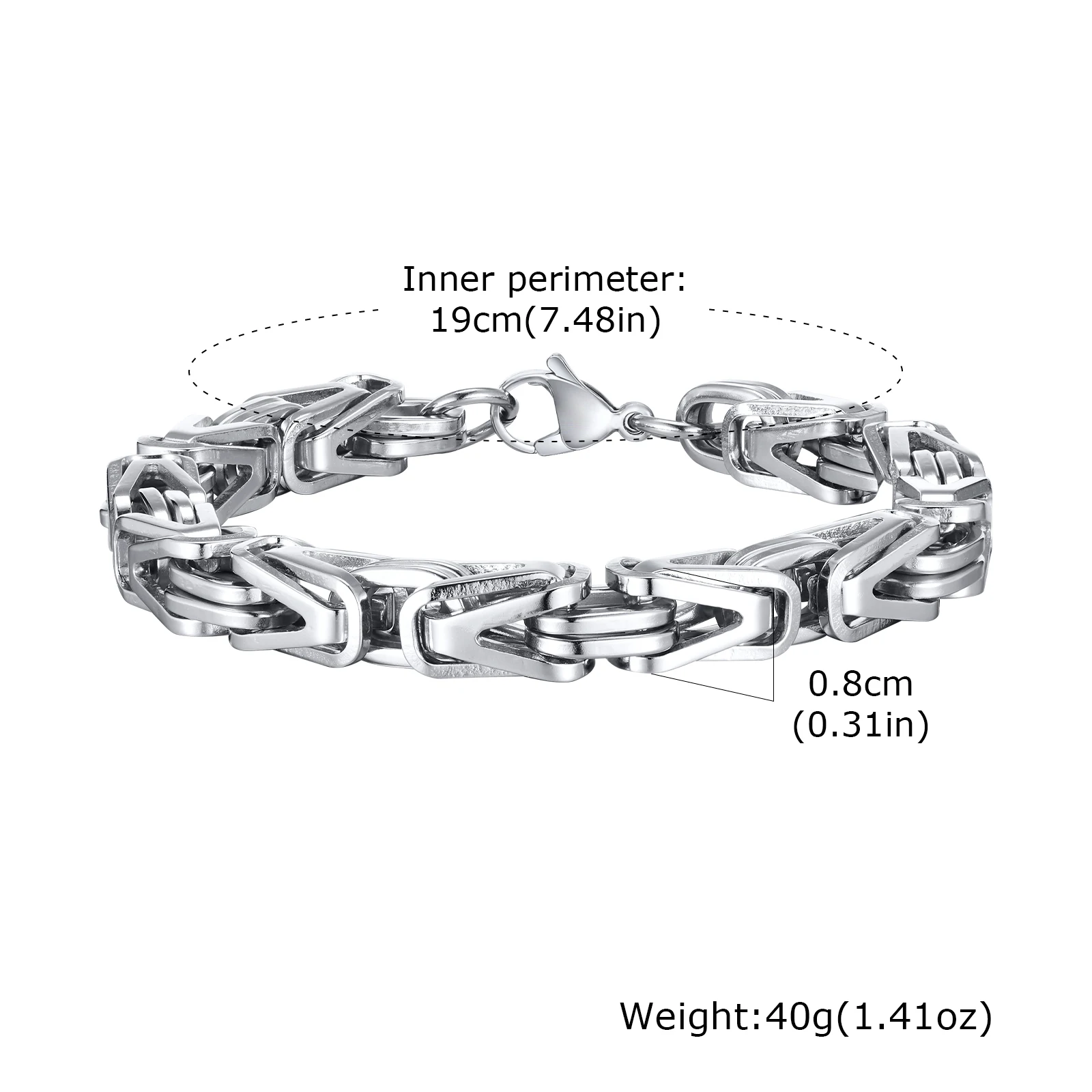 Feita com **aço inoxidável robusto**, esta peça é resistente e mantém o seu brilho, sendo uma opção confiável para quem procura um acessório que não perde a sua beleza com o tempo. O fecho tipo **”lobster”** garante segurança e facilidade ao colocar e tirar a pulseira. É o toque final que faltava para expressar sua personalidade com confiança e bom gosto.